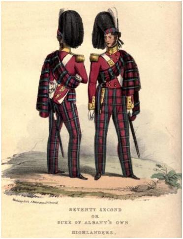 On the 15th of May 1778, the Earl of Seaforth’s regiment assembled at Elgin, in Moray, amounting to one thousand and forty-one rank and file; it was inspected by Major-general Robert Sken, adjutant general in North Britain, and the men were found so remarkably effective and fit for His Majesty’s service, that nearly everyone was accepted: the corps was placed on the establishment of the regular army under the designation of “Seaforth’s Highlanders;” the supernumerary men were formed into a recruiting company, and the regiment received orders to march southward, for the purpose of embarking for the East Indies. It soon afterwards obtained the numerical title of the “Seventy-Eighth Regiment."