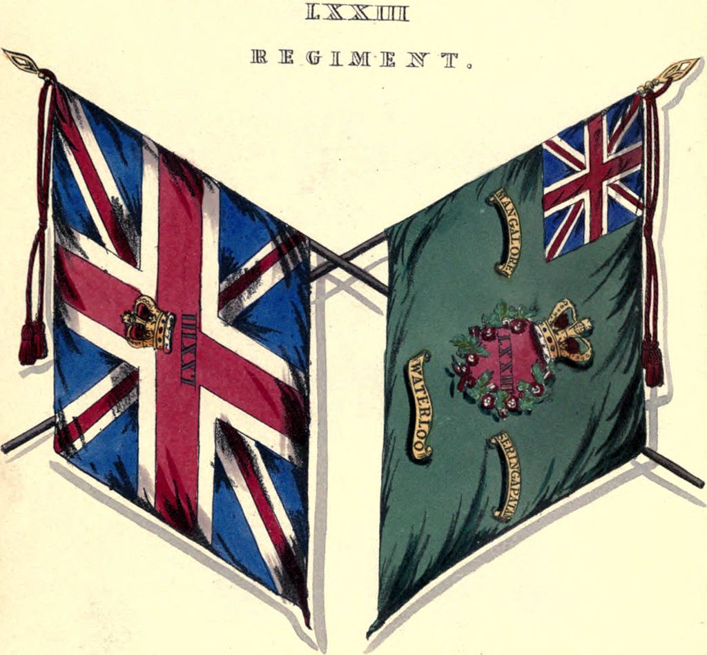 The 73rd was raised as the 2nd Battalion, 42nd (Royal Highland) Regiment of Foot in March 1780, with eight officers from the 1st Battalion being detached to help raise the new battalion. The battalion was sent to India in January 1781 and took part in the Siege of Mangalore in autumn 1783 during the Second Anglo-Mysore War. It was still in India when the battalion received regimental status in 1786 as the 73rd (Highland) Regiment of Foot. The new regiment remained in India and saw action at the Siege of Seringapatam in 1792 during the Third Anglo-Mysore War, the Siege of Pondicherry in August 1793 during the French Revolutionary Wars and the capture of the Dutch settlements in Ceylon in 1795. It went on to form part of the storming party at the Siege of Seringapatam in April 1799 during the Fourth Anglo-Mysore War before returning to England in July 1806. In April 1809 the regiment raised a second battalion in Nottingham from local militia companies and lost its Highland status due to recruiting difficulties, becoming the 73rd Regiment of Foot. The 1st Battalion embarked at Yarmouth for a seven-month journey to New South Wales, Australia in May 1809. The battalion took part in the Second Kandyan War in Ceylon in 1815. Following the disbanding of the 2nd Battalion in 1817, some 300 of its remaining soldiers sent out to Trincomalee to join the 1st battalion. In that year the regiment took part in suppressing the Uva Rebellion, losing 412 out of approximately 1,000 men. In November 1821 the regiment returned home from Ceylon. It was posted to Gibraltar in August 1827and to Nova Scotia in April 1838. After returning to England in June 1841, the regiment succeeded in having its Highland status restored, in so far as it was re-designated The 73rd (Highland) Regiment of Foot in 1845. In January 1846, the 73rd Highlanders arrived in Argentina to project British interests during the Uruguayan Civil War. The regiment then sailed on to the Cape Colony to take part in the Seventh Xhosa War. In 1857 the regiment helped to suppress the Indian Rebellion seeing some action in Central India. In 1862 it received a new title becoming the 73rd (Perthshire) Regiment of Foot. The regiment was posted to Hong Kong in 1866, back to Ceylon in 1871 and to India in 1874. As part of the Cardwell Reforms of the 1870s, where single-battalion regiments were linked together to share a single depot and recruiting district in the United Kingdom, the 73rd was linked with the 90th Regiment of Foot (Perthshire Volunteers), and assigned to district no. 60 at Hamilton Barracks. The regiment amalgamated with the 42nd Regiment of Foot, the regiment they originated from 95 years earlier, to form the Black Watch (Royal Highlanders).