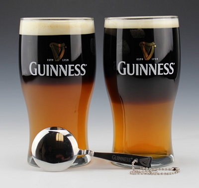 Black and Tan is a drink made from a blend of pale ale and a dark beer such as a stout or porter, most often Guinness. Sometimes a pale lager is used instead of ale; this is usually called a half and half. Contrary to common North American belief, however, Black and Tan as a mixture of two beers is not a term commonly used in Ireland due to the association with the Royal Irish Constabulary Reserve Force, nicknamed the Black and Tans – more on that later. The style is believed to have originated in pubs in Britain with drinkers ordering a mix of dark stout and draught bitter. The earliest recorded usage of the term in the Oxford English Dictionary is from 1889, though an earlier origin of an 18th century blend of porter and pale ale has been conjectured. The name "black and tan" had earlier been applied to dogs, such as the black and tan coon-hound. The most common type of Black and Tan in the United States uses Guinness Draught (not Extra Stout) and Bass, though variations using Harp Lager instead of Bass are referred to as Half and Half. Guinness and Newcastle is generally called a Black Castle. The "layering" of Guinness on top of the ale or lager is possible because the relative density of the Guinness is less than that of the ale or lager. The opposite scenario (where the layer on top is heavier than bottom) would produce the fluid mechanics phenomenon known as the Rayleigh-Taylor Instability. To prepare a Black and Tan in the American way, first fill a glass halfway with the ale, then add the Guinness Draught (from the can, bottle, or tap). The top layer is best poured slowly over an upside-down tablespoon placed over the glass to avoid splashing and mixing the layers. A specially designed black-and-tan spoon is bent in the middle so that it can balance on the edge of the pint-glass for easier pouring.