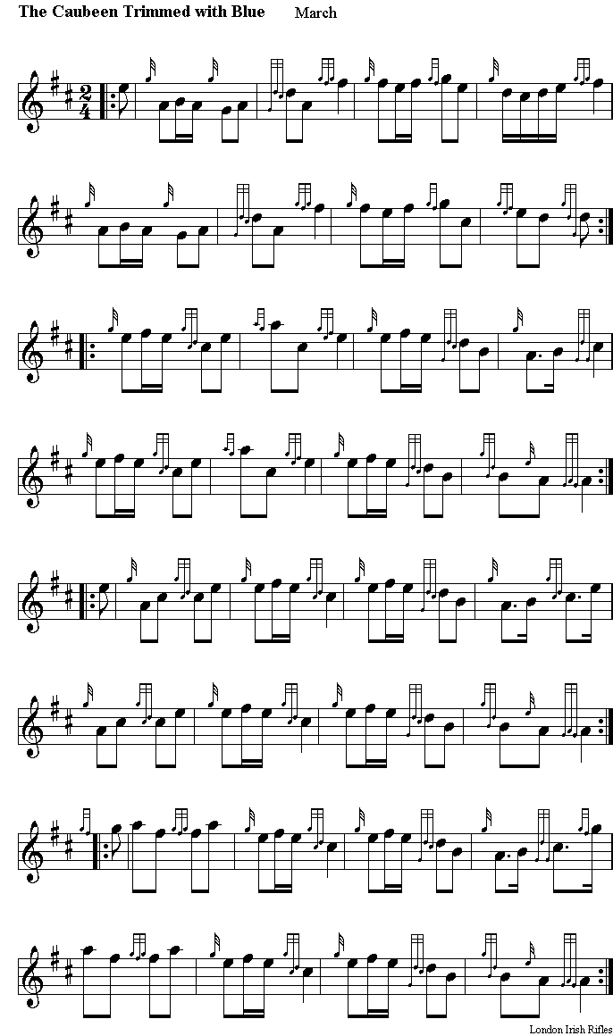 The Caubeen Trimmed with Blue is the men’s breakfast and dinners march of the London Irish Rifles.