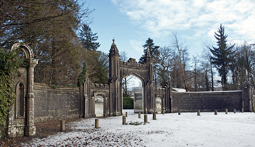 Gothic entrance gates and gate lodge, which were built