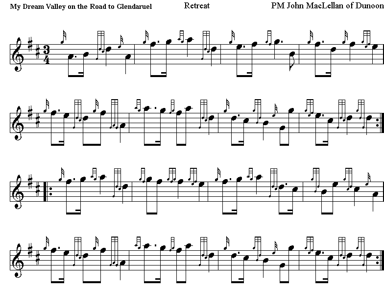 bagpipe tunes, including The Glendaruel