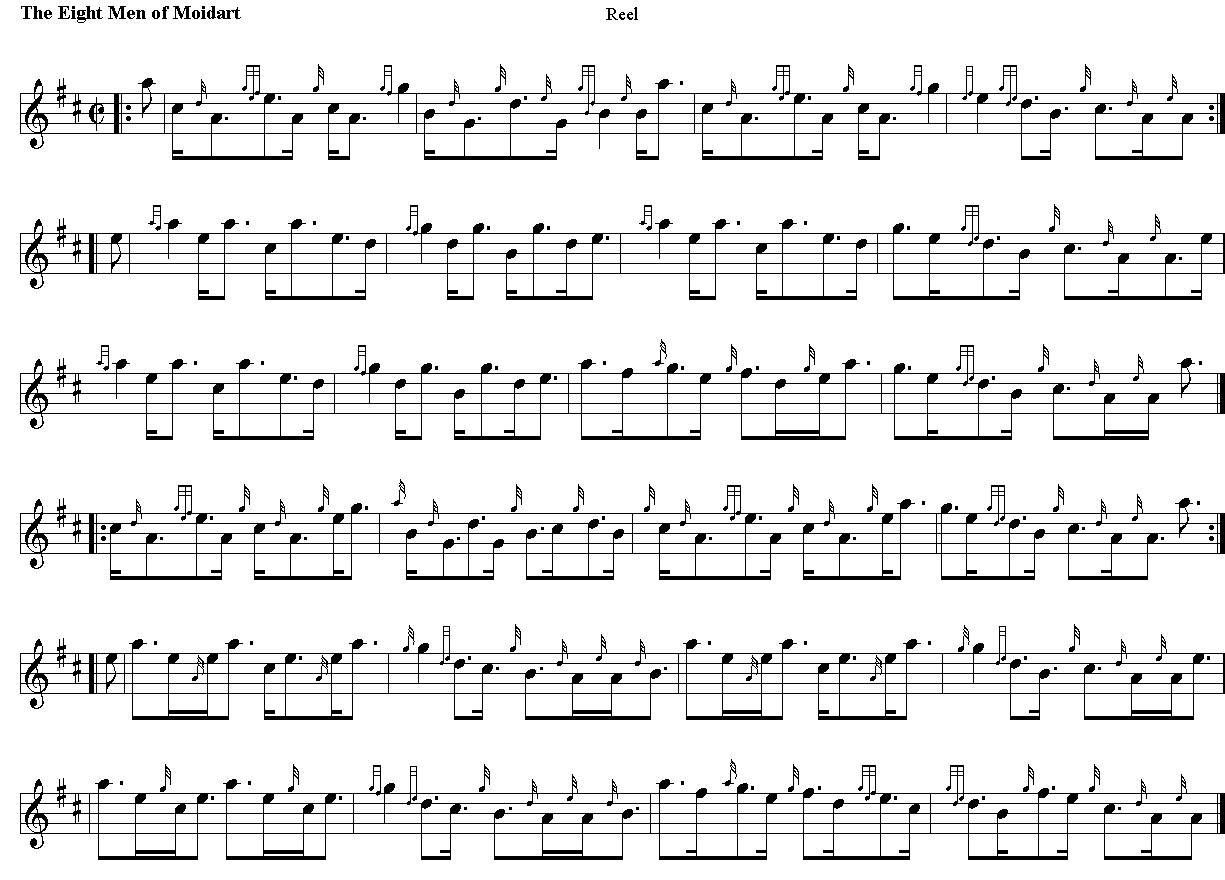 The Rough Bounds became a hotbed of Jacobite sympathy. Following the failure of the Jacobite rising of 1745, it was the last part of Scotland in which Bonnie Prince Charlie found sanctuary. Finally leaving Scotland from Loch nan Uamh, he took seven prominent men with him, who despite their places of origin became known as the Seven Men of Moidart (the Second Duke of Atholl, Aeneas MacDonald - brother of the local Laird, Francis Strickland - an English squire, George Kelly - Irish Presbyterian minister, and three Irishmen serving as French soldiers); a commemorative row of beech trees was planted a century later. Perhaps the tune should more accurately be called the seven men of Moidart.