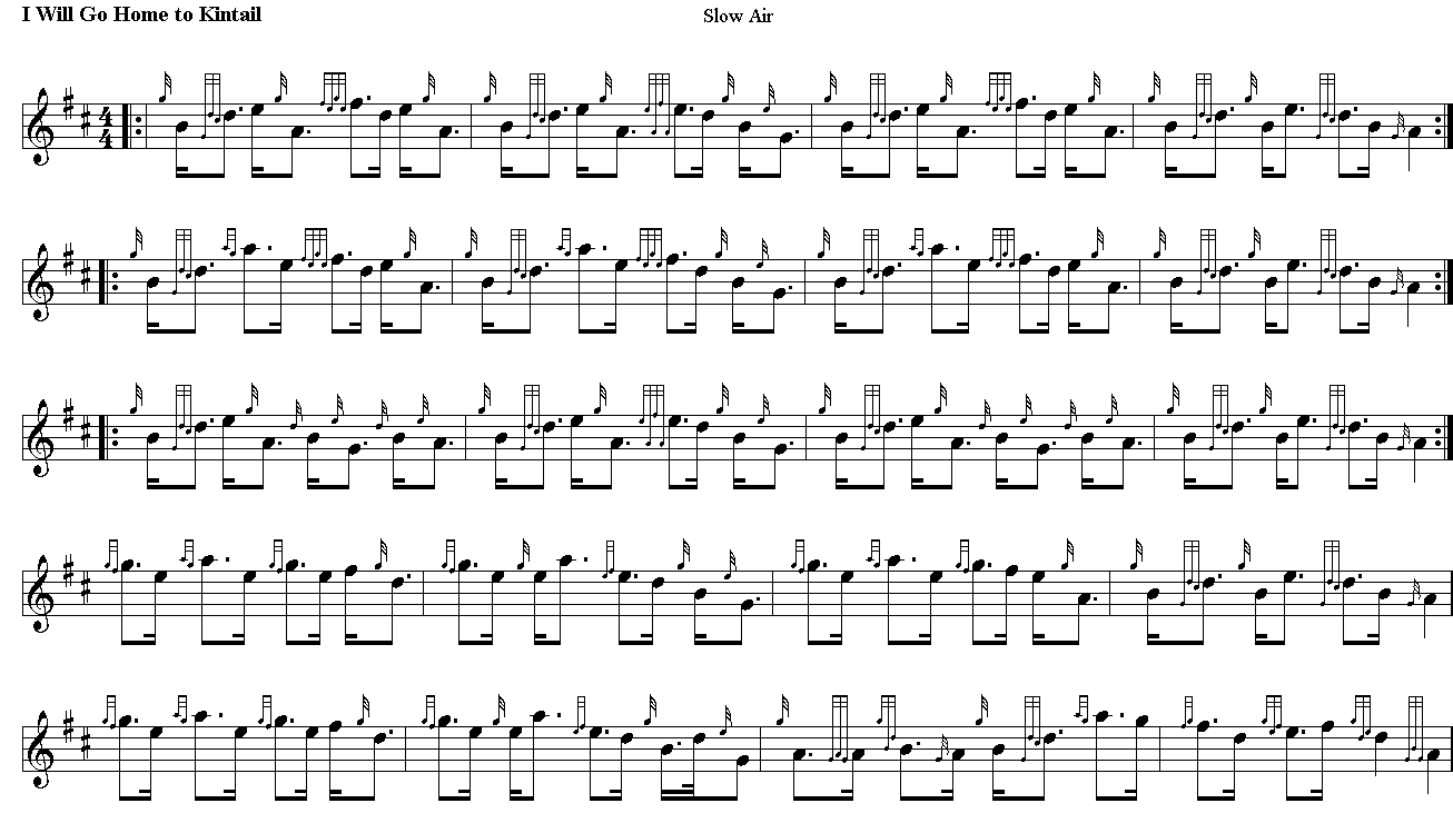 Also known as Theid mi dhachaidh 'chrò Chinn t-sàile, I will go home to the cattle folds of Kintail, Return to Kintail, and I'll Return to Kintail. Kintail is an area of mountains in the Northwest Highlands of Scotland, located in the Highland Council area.