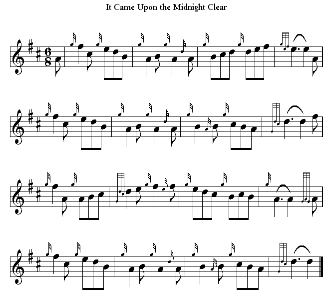 It Came Upon the Midnight Clear "It Came Upon a Midnight Clear", is based on an 1849 poem written by Edmund Sears, pastor of the Unitarian Church in Wayland, Massachusetts. It first appeared on December 29, 1849, in The Christian Register in Boston, Massachusetts. He wrote It Came Upon the Midnight Clear while serving as a part-time preacher in Wayland. Writing during a period of personal melancholy, and with news of revolution in Europe and the United States' war with Mexico fresh in his mind, Sears portrayed the world as dark, full of "sin and strife", and not hearing the Christmas message. Sears is said to have written these words at the request of his friend, William Parsons Lunt, pastor of United First Parish Church, Quincy, Massachusetts, for Lunt's Sunday school. One account says the carol was first performed by parishioners gathered in Sears' home on Christmas Eve, but to what tune the carol was sung is unknown as Willis' familiar melody was not written until the following year. According to Ken Sawyer, Sears' song is remarkable for its focus not on Bethlehem, but on his own time, and on the contemporary issue of war and peace. Written in 1849, it has long been assumed to be Sears' response to the just ended Mexican–American War. The song has been included in many of the Christmas albums recorded by numerous singers in the modern era. In 1850 Richard Storrs Willis, a composer who trained under Felix Mendelssohn, wrote the melody called "Carol". This melody is most often set in the key of B-flat major in a 6/8 time signature. "Carol" is still the most widely known tune to the song in the United States.