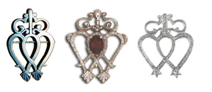 toys, trinkets and other hardware sold at stalls along this pathway. The first Luckenbooth brooches date from the late XVII century and were very small. This traditional gift was given to a man’s sweetheart on their betrothal but also it was considered a lucky charm, protecting the wearer against evil eyes. Among other powers the Luckenbooth has, was easing the pain at childbirth and ensuring a good flow of breast milk when pinned to a woman’s petticoats near the left thigh. If pinned to the baby’s shawl, it will protect the child from being stolen by fairies. During the XVIII and XIX centuries the Luckenbooth became larger and more elaborate with inscriptions on the back such as biblical references or the initials of the couple and the date of their betrothal. Another legend of the luckenbooth is that it was a symbol of love and devotion, which Mary Queen of Scots is said to have given to Lord Darnley. It has the St. Andrew Cross, the Scottish thistles, and entwined hearts. From 1850 onwards, the intertwined hearts resembling the letter “M” came to be called Mary’s Brooches or even Queen Mary’s Brooches. Most Luckenbooth brooches today are in the form of two hearts topped by a crown and are made of silver, though versions of this traditional Scottish brooch can be found in iron and brass. Victorian ones were generally set with garnets. Garnets were thought to have a lucky influence on affairs of the heart and symbolized a lover’s constancy as well as being an emblem of deep friendship. The Victorian versions of the Luckenbooth brooch were decorated with gems of different colors. |