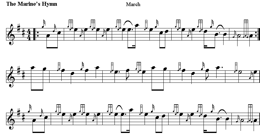 The Marine's Hymn is the official hymn of the United States Marine Corps. It is the oldest official song in the U.S. Armed Forces. The song has an obscure origin—the words date from the 19th century, but no one knows the author. The music is from the Gendarmes' Duet from the opera Geneviève de Brabant by Jacques Offenbach, which had its début in Paris in 1859. The Marine Corps secured a copyright on the song on August 19, 1919, but it is now in the public domain.