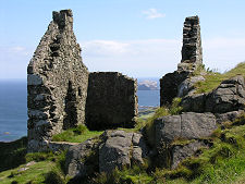 The summit of North Berwick Law is home to rather more in the way of structures than you might expect. Just below the summit to its north are the remains of a stone building used as a watch-house during the Napoleonic Wars in the years either side of 1800. Soldiers based here lit a warning fire if they saw French ships trying to enter the Firth of Forth. The Law had long served this purpose: in 1544 the watch, this time for Henry VIII's English navy, was kept up by nuns of the nearby Cistercian convent. And in World War II the Law once more served as a lookout, this time by troops based in the brick and concrete structure just to the west of the Napoleonic watch-house. The summit itself is best known as home to a pair of whale's jawbones standing within a small enclosure surrounded by railings. These were first placed here in 1709. The first set blew down in a gale in 1935 and were replaced. In 2005 the replacement pair were in danger of collapse, so were removed. Somehow North Berwick didn't seem the same without the arch of whalebones on North Berwick Law, yet in a more environmentally sensitive era, the idea of replacing them with more whalebone was clearly out of the question. Instead they were replaced in June 2008 by a pair made from fiberglass that had been cast from those removed in 2005, with the whole cost being covered by an anonymous friend of North Berwick. After three years with "something missing", North Berwick Law once more looks complete.