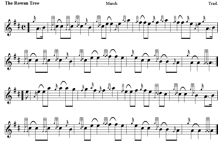 The rowans or mountain-ashes are shrubs or small trees. The name "rowan" is derived from the Old Norse name for the tree, raun. Linguists believe that the Norse name is ultimately derived from a proto-Germanic word *raudnian meaning "getting red" and which referred to the red foliage and red berries in the autumn. Rowan is one of the familiar wild trees in the British Isles, and has acquired numerous English folk names. The following are recorded folk names for the rowan: Delight of the eye (Luisliu), Mountain ash, Quickbane, Quickbeam, Quicken (tree), Quickenbeam, Ran tree, Roan tree, Roden-quicken, Roden-quicken-royan, Round wood, Round tree, Royne tree, Rune tree, Sorb apple, Thor's helper, Whispering tree, Whitty, Wicken-tree, Wiggin, Wiggy, Wiky, Witch wood, Witchbane, Witchen, Witchen Wittern tree. Many of these can be easily linked to the mythology and folklore surrounding the tree. In Gaelic, it is caorann, or Rudha-an (red one, pronounced quite similarly to English "rowan"). The rowan tree has a long tradition in European mythology and folklore. It was thought to be a magical tree and protection against malevolent beings. It was said in England that this was the tree on which the Devil hanged his mother. The density of the rowan wood makes it very usable for walking sticks and magician's staves. This is why druid staffs, for example, have traditionally been made out of rowan wood, and its branches were often used in dowsing rods and magic wands. Rowan was carried on vessels to avoid storms, kept in houses to guard against lightning, and even planted on graves to keep the deceased from haunting. It was also used to protect one from witches. Often birds' droppings contain rowan seeds, and if such droppings land in a fork or hole where old leaves have accumulated on a larger tree, such as an oak or a maple, they may result in a rowan growing as an epiphyte on the larger tree. Such a rowan is called a "flying rowan" and was thought of as especially potent against witches and their magic, and as a counter-charm against sorcery.Rowan's alleged protection against enchantment made it perfect to be used in making rune staves, for metal divining, and to protect cattle from harm by attaching sprigs to their sheds. Leaves and berries were added to divination incense for better scrying. The lyrics were penned by Lady Nairne. Carolina Oliphant, Baroness Nairne (August 16, 1766–October 26, 1845) was a Scottish songwriter and song collector. Carolina Oliphant was born in the auld hoose of Gask, Perthshire. She was descended from an old family which had settled in Perthshire in the 13th century, and could boast of kinship with the royal race of Scotland. Her father, Laurence Oliphant, was one of the foremost supporters of the Jacobite cause, and she was named Carolina in memory of Prince Charles Edward Stuart. In the schoolroom she was known as pretty Miss Car, and afterwards her striking beauty and pleasing manners earned for her the name of the Flower of Strathearn. In 1806 she married William Murray Nairne, who became the 5th Baron Nairne in 1824. After her husband's death in 1830 Lady Nairne took up her residence at Enniskerry, Co. Wicklow, Ireland, but she spent much time abroad. She died at Gask on the 26 October 1845. Following the example set by Robert Burns in the Scots Musical Museum, Lady Nairne undertook to bring out a collection of national airs set to appropriate words. To the collection she contributed a large number of original songs, adopting the signature BB - Mrs Bogan of Bogan. The music was edited by RA Smith, and the collection was published at Edinburgh under the name of the Scottish Minstrel (1821-1824).