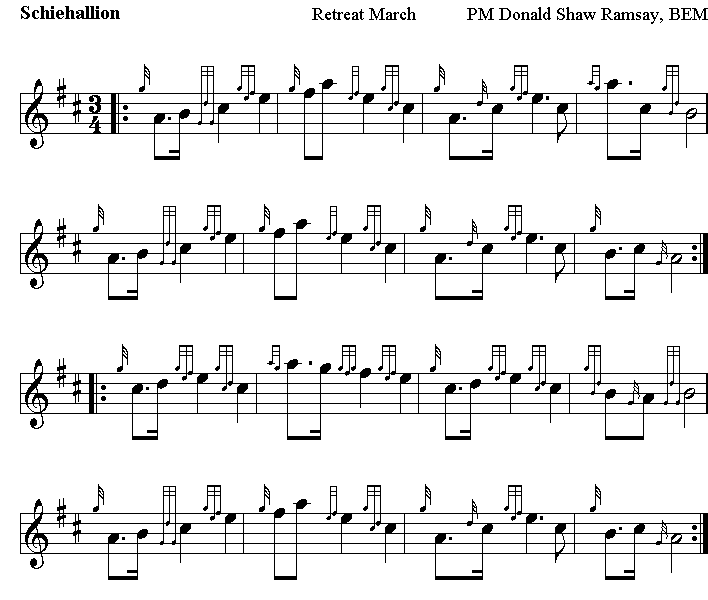 But it was not just in the pipe band world that Donald Shaw Ramsay made his mark. He is regarded as one of the leading modern composers, with such tunes as “Angus MacKinnon,” “Mrs. Lily Christie,” “Tam Bain’s Lum,” “The 10th Bn. Highland Light Infantry Crossing the Rhine, ” “Jimmy Young” and “Schiehallion” now ensconced as stalwarts in the piping repertoire.