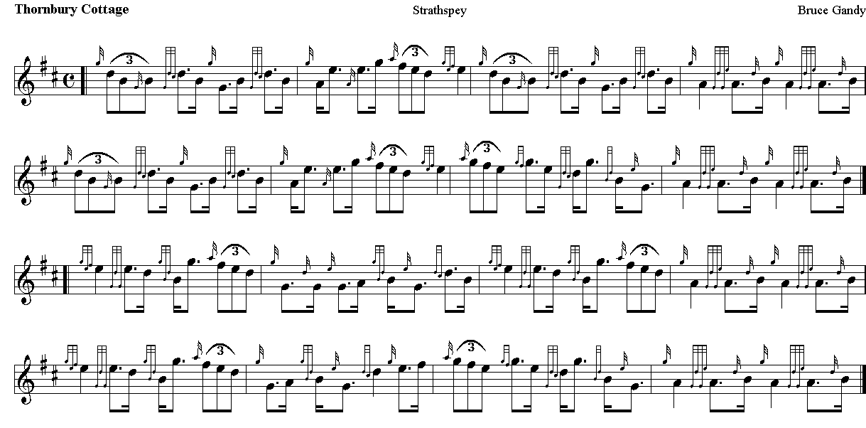 When in top form on the competition platform he is formidable, and while the major Scottish prizes seemed to elude him for a long time, in recent years he has begun to gather them up, much to the satisfaction of his friends and competitors. As a composer, his catalogue of superb tunes is large and still growing. Pipers are often surprised to learn that a tune they’ve heard for years and thought was in the traditional repertoire is actually a Bruce Gandy composition.