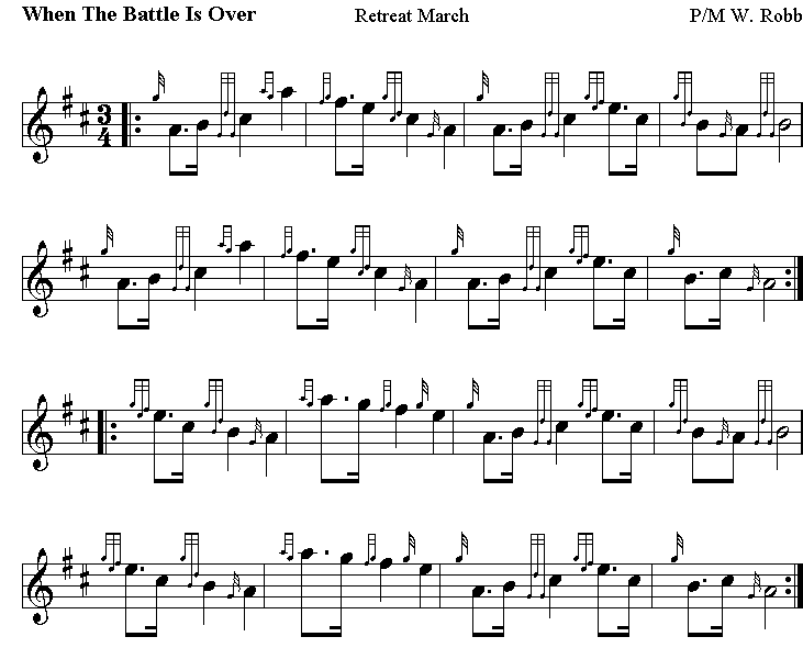 An excellent player, and winner of the Gold Medal at Oban in 1893, William Robb (above) is best known as the composer of one of the most popular retreat marches ever penned: "When the Battle is Over," commonly known to pipers as "The Battle's O'er." He was Pipe Major of the 2nd Battalion Argyll and Sutherland Highlanders from 1887-1891, and of the 1st Argylls from 1891-1894. He was also famous in his day for a 'test march' he made with P/M James MacKay, another A & S Highlander, in 1895 when the two marched 35 miles from Aldershot to Hyde Park Corner playing alternately all the way. He died in 1942. The lyrics are by Andy Stewart. Andy Stewart MBE (30 December 1933 - 11 October 1993) was a Scottish singer and entertainer. The use of tartan patriotism and stereotypical Scottish humor goes back to Sir Harry Lauder and music hall songs. In the 1960s this strand was continued by the entertainer, Andy Stewart. He was born in Glasgow in 1933, the son of a teacher. He moved to Arbroath as a child, and then trained as an actor at the Royal Scottish Academy of Music and Drama in Glasgow. He had several hit singles - "Come in-Come in", "Donald Where's Yer Troosers?", "A Scottish Soldier" (36 weeks in the UK Singles Chart in 1961), "Campbeltown Loch", "The Muckin' O' Geordie's Byre", "The Road to Dundee", "Tunes Of Glory", and "Dr. Finlay" (1965). He is also remembered for being the compere of the The White Heather Club. This was a BBC Scotland television program that existed as an annual New Year's Eve party (1957 - 1968), and also as a weekly early evening series (1960 - 1968). "Donald Where's Yer Troosers?" was a hit in 1961 and again in 1989. It was also recently featured on the American TV show "Terminator: the Sarah Connor Chronicles" sung by one of the terminators, played by Garrett Dillahunt. Andy does an Elvis Presley impersonation half way through the song. On the strength of this comedy hit, Andy toured Australia and appeared on the Ed Sullivan show in 1968, doing impersonations of Dean Martin. His skill with different accents is also evident on "The Rumor", where the rumor moves across Scotland and into Ireland, with Andy speaking in a different accent for each place. His albums, such as Scottish Soldier and Andy Stewart's Scotland, were also popular internationally. In retirement he moved back to Arbroath and died there in 1993. Before he died he did a small concert at Arbroath High School (which he had attended) for the pupils. He was also due to appear in a concert at Glasgow's Pavilion Theatre. A sheltered housing scheme in Arbroath, 'Andy Stewart Court', was named in his memory. Stewart died after giving one of his most renowned performances during a Gala Benefit Concert for Children's Hospice Association Scotland. He came to the Usher Hall in Edinburgh from his sick bed to appear for the children, and gave his last ever performance. Stewart was awarded an MBE in 1976. Stewart's son Ewan Stewart is an actor, whose film and television credits include Rob Roy, Titanic and Only Fools and Horses.